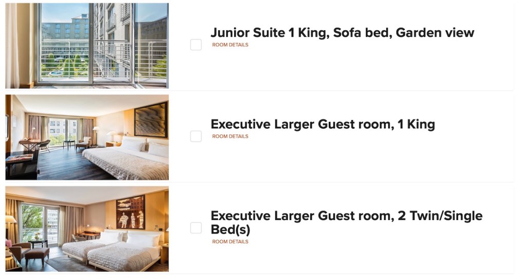 If you are a Marriott Bonvoy Platinum / Titanium / Ambassador Level member, you’ll have access to Marriott Bonvoy Suite Night Awards. The Le Meridien Munich has a number of rooms in the Suite Night Award pool that included a one bedroom executive suite, a Deluxe Suite and a Junior Suite.