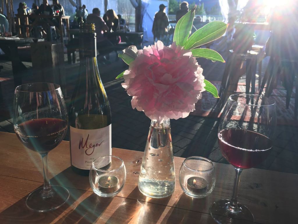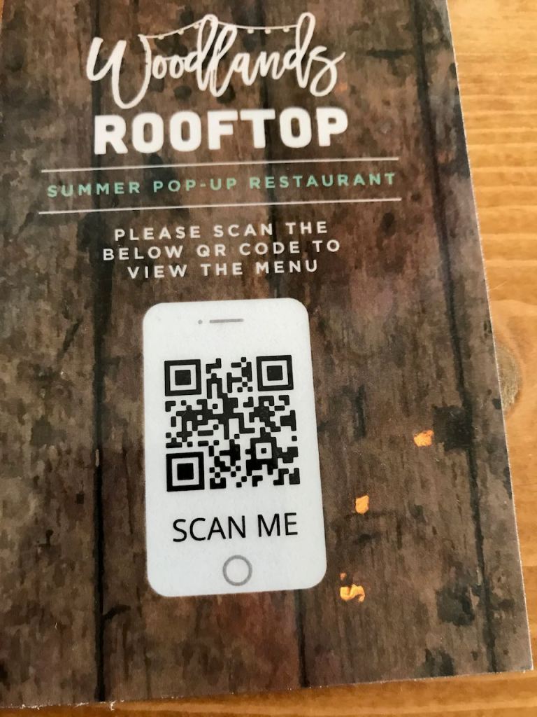 We settled into our socially distant table which was a long picnic table with just the two of us. We were presented menus, although we were also given the opportunity to read the menus electronically on line by scanning a QR code on a business card. The menus themselves were set and were inclusive of a 3 course meal.