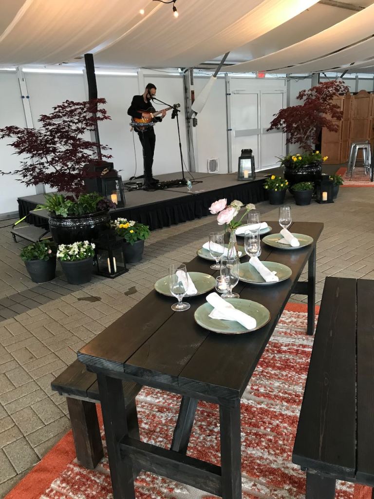 But what happens when the wedding season is cancelled thanks to a pandemic? Thanks to brilliant business innovation, the property at Fairmont has transformed this roof top space into a Summer Pop Up Restaurant. Their idea is the Woodlands Summer Rooftop Barbecue, which is set in the usual wedding space on the roof top of the Fairmont Chateau Whistler. From their website,