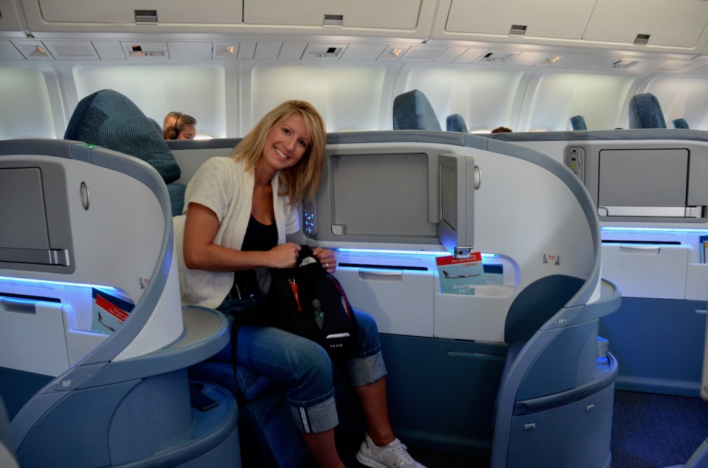 That’s the sign of a happy person in a pretty empty business class cabin.