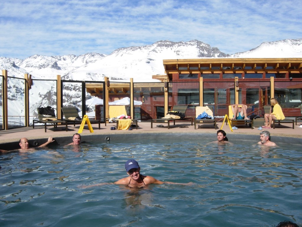 During our 3 day stay, Valle Nevado also put on a complimentary wine tasting on our last night. It was a strange experience to go from an outdoor hot tub at 10,000 feet to a wine tasting on the hot tub deck featuring fabulous appetizers, leather couches outside, Chilean wines, portable campfires with wood and a jazz band at sunset!! Being a bit bitter about the pricing, the small room and the fact that we felt as though we were getting fleeced, we took advantage of the free pour and downed as much as we humanly could. Needless to say, the wine was fabulous with a wide range of Cabernet, Cameniere and Merlot on offer!!