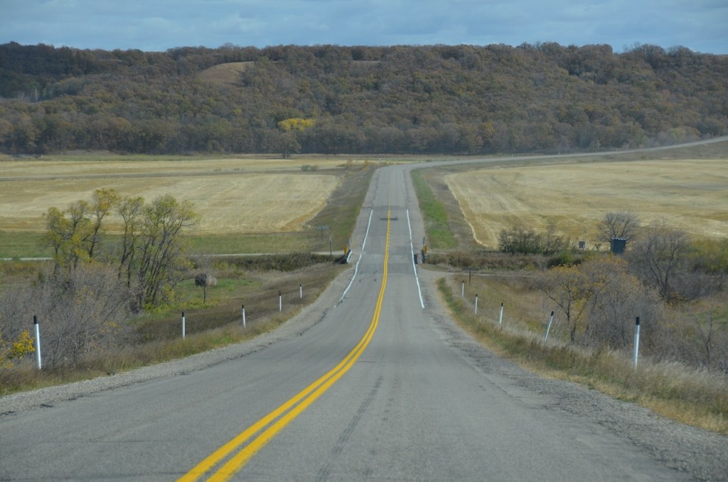 I would pass through the town, and several miles of monotony, followed by additional grain elevators.