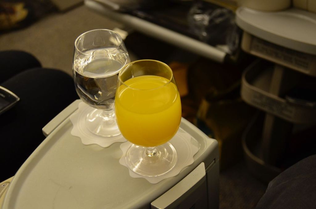 For this short 90 minute flight, menus were passed out and the service could be described as “quick”. One champagne, one white and one red were offered for this flight.