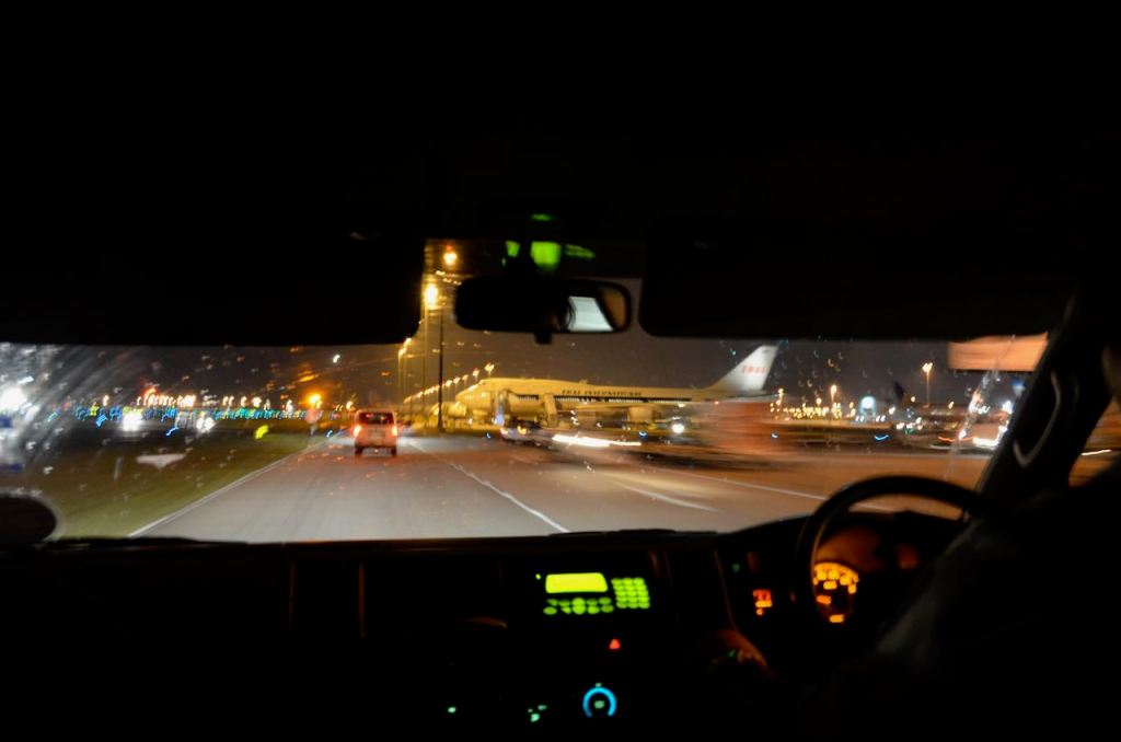 After a whirlwind day of temple sightseeing with a foot massage at the Kao San market, we returned to Le Meridien Bangkok and hopped a taxi back to Survarnabhumi. The fare was a more reasonable 226 bhat plus 75 bhat for tolls ($11 USD) from Le Meridien. Leaving the hotel, it was almost directly onto the elevated expressway back to the airport, making it a very quick 35 minute journey at the end of rush hour at 6:30 PM.