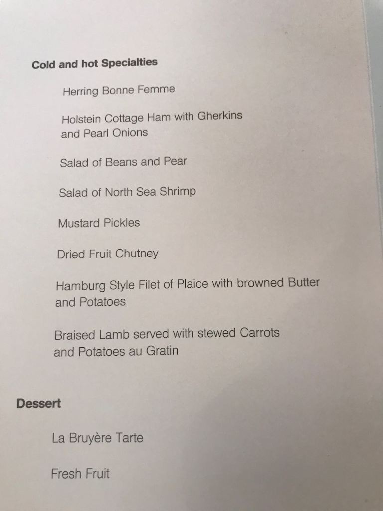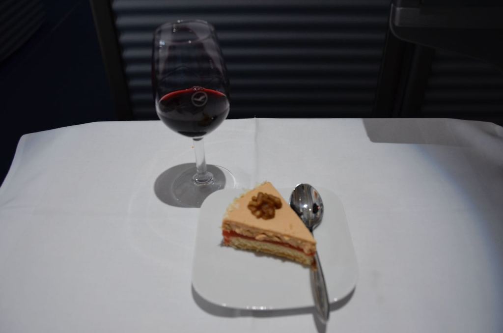 The second service started about two hours before landing. The meal service was a three course snack featuring specialities from Norther Germany. The service was “family style” in that you could order items off the cart as much or as little as you were interested.