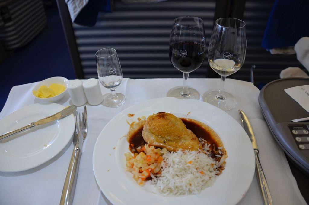 For the main course, I enjoyed the Guinea Fowl for the main with a glass of the red Grand Cru Classee. The Guinea Fowl was nicely executed for airline food and easy to approach.