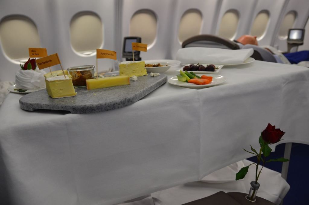 We opted to eat a bit later than everyone else. Indeed, our flight attendant serving us confirmed that “we were the masters of time. “ The dinner order was taken with the question on whether we were to wake up for the last service 2.5 hrs before landing. I notice that the order sheet had a plan layout of the entire F cabin, including the surnames of each passenger and their food preferences.