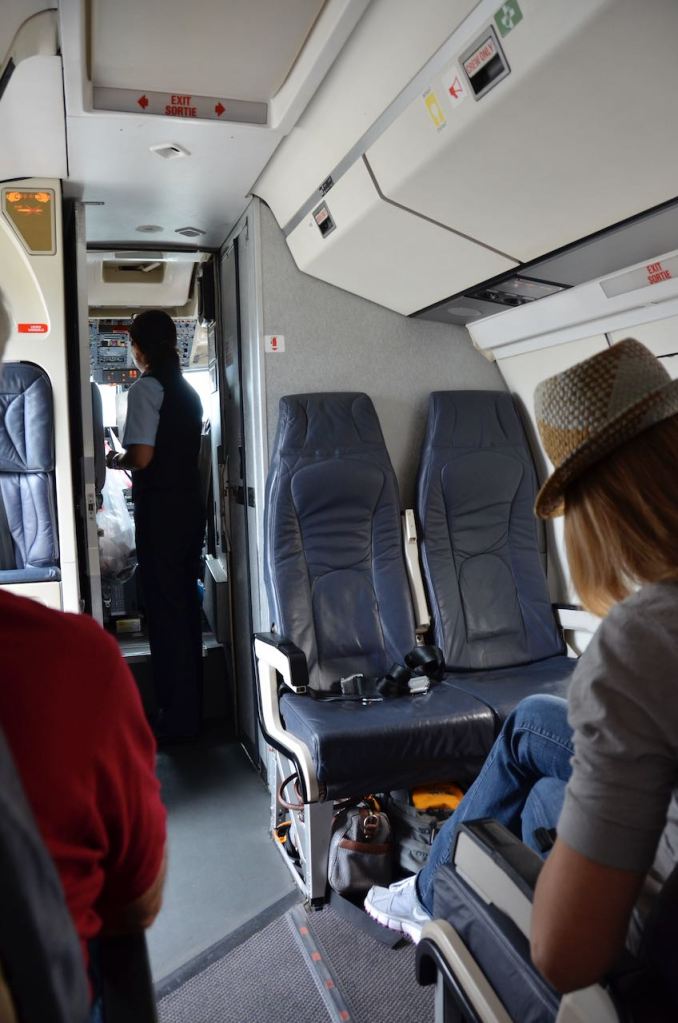 Airborne, it was a quick flight at 12,000 feet back to Canadian airspace. With a tiny cabin, they offered soley a water service on this flight. I think this was because they had run out of orange juice (having been served a choice of water, orange or apple juice on this segment previously).