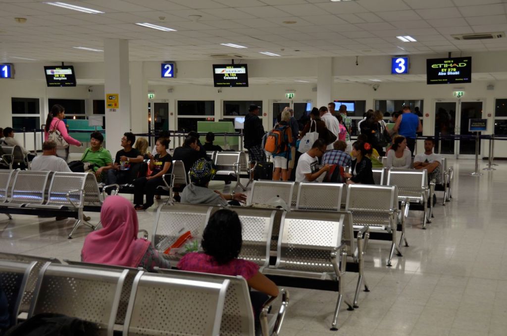 Passing through security and immigration, we entered the pre-departure holding lounge and a world of over priced tacky souvenirs. It would only make sense that if the visitors went straight to the resort, that they would also need to get their T-Shirts somewhere. I picked up a $5 magnet. There was also a large duty free area including alcohol available, which the Chinese were stocking up on.