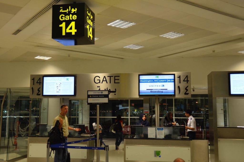 Our time in the Middle East drew to an end. Heading to the airport, the check in was a mess. There were long lines and only 4 check in agents working hard to fill an entire Boeing 777. Sharp eyed readers will note that this was the Etihad check in desks for our outbound AUH flight.