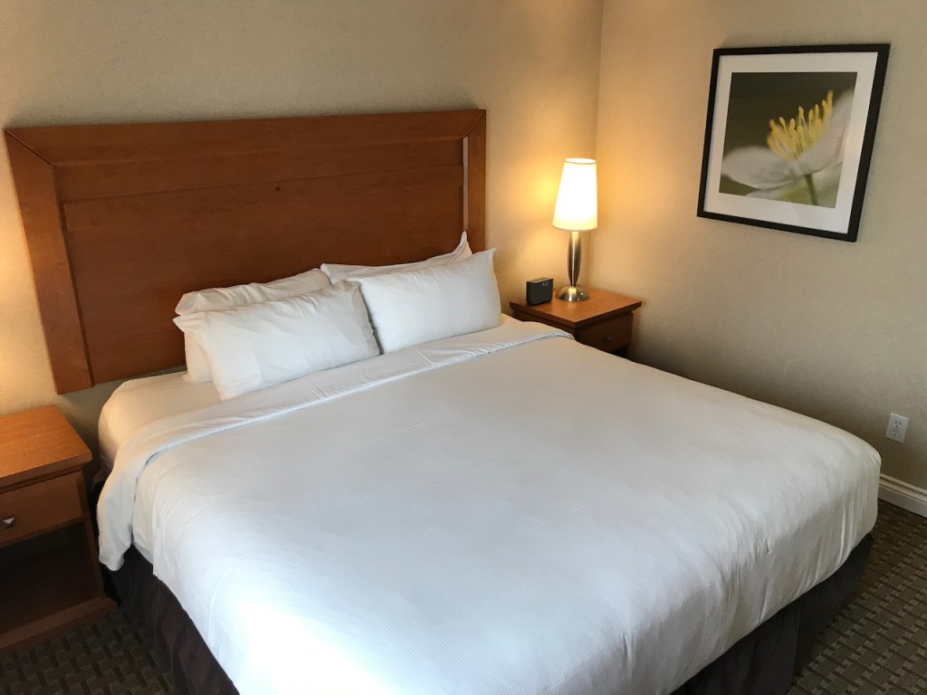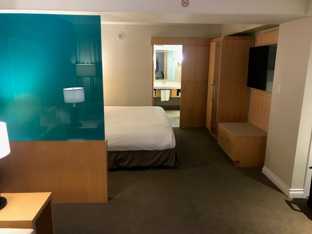 The Grand Okanagan 1 Bedroom Condominium featured a private bedroom. It was a little on the smaller size, as can be expected for a hotel condominium room. Other than sleeping, we didn’t spend much time in here; favouring the living space which was more than comfortable and larger in size.