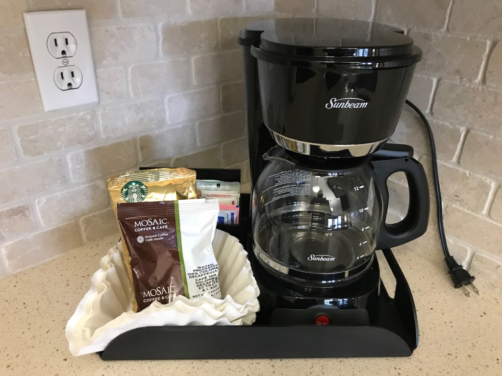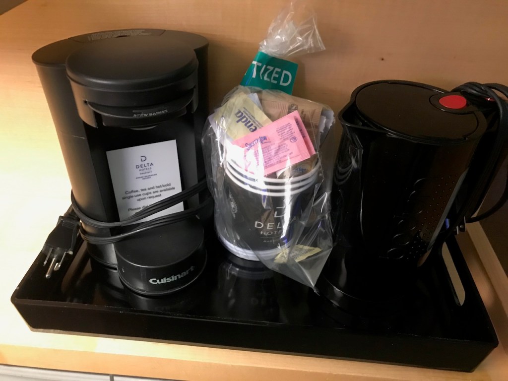 The coffee maker in room was available. I did end up using the coffee maker and the coffee itself was a “once and done” type. It unbranded and pretty freeze dried and not all too enticing; at least not enough to order any more on this stay.
