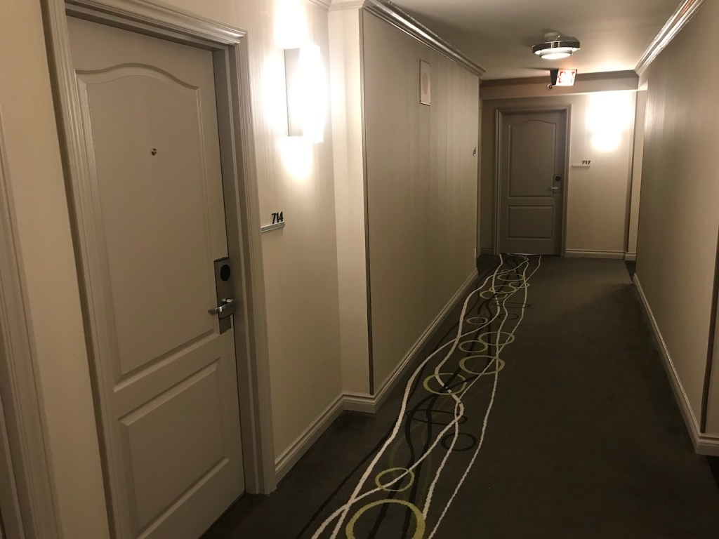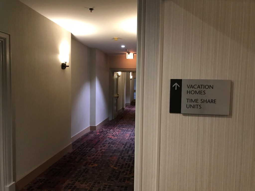 Heading up to the room. The floors are irritatingly controlled by key card elevators, even in the off seasons. This isn’t so bad if you’re not carrying anything, but it’s always a challenge to fumble for a key card when activating the elevators.
