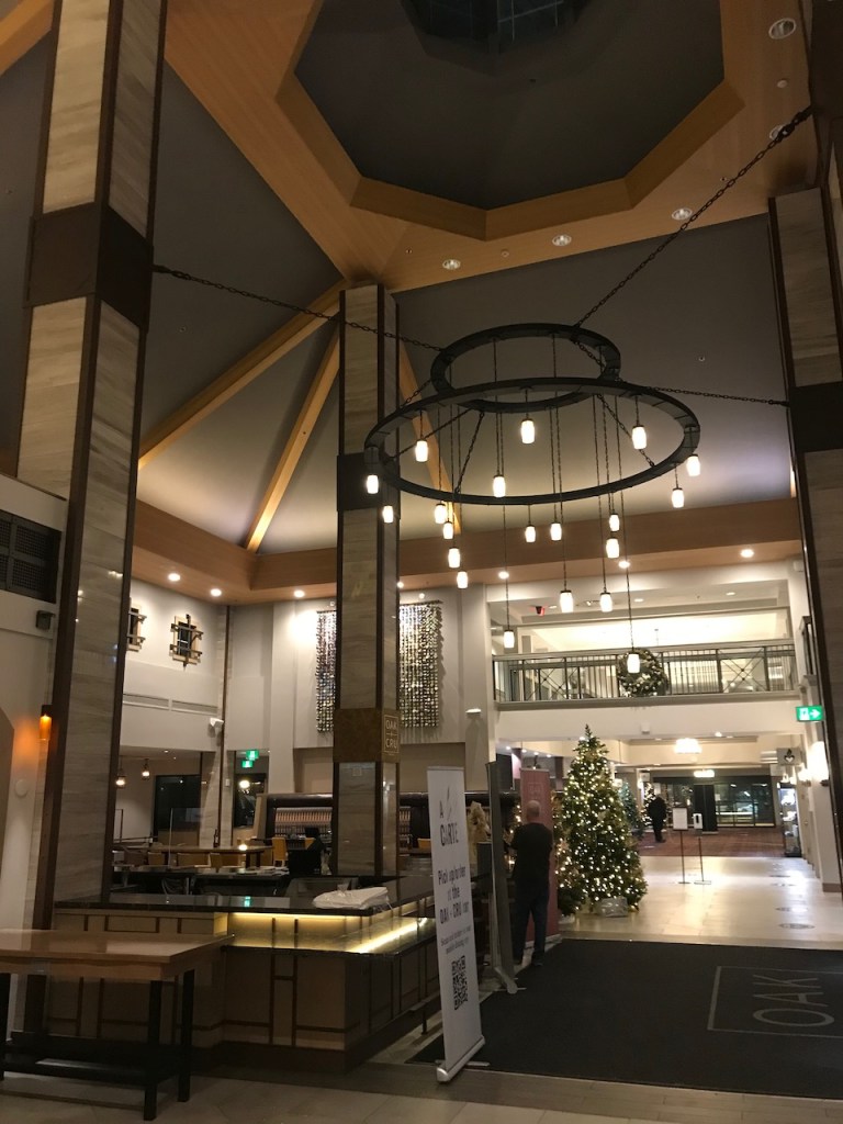 The Oak and Cru Social Kitchen and Wine Bar is the primary hotel restaurant. It’s situated in a commanding spot in the lobby. The space has recently been refreshed, as everything looks clean and new.