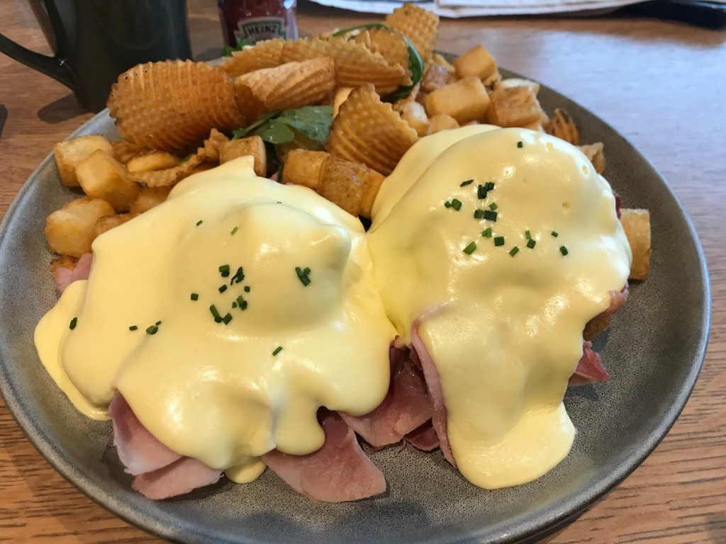 While the breakfast menu was limited to a few traditional items, I ended up enjoying an Eggs Benedict with Country Ham, served on freshly baked brioche from Kelowna’s Specialty Bakery. The server proudly reported that it was frequently reported to be among Kelowna’s best Eggs Benedict dishes. I would have to agree; the Eggs Benedict was filling, tasty with a pleasant lemon fresh hollandaise sauce.