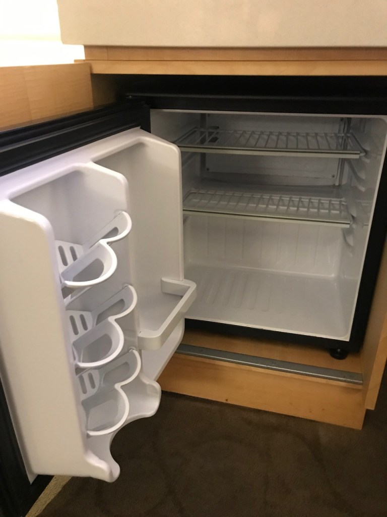 The living area of the room also offered a small fridge. I have found many hotel fridges to be ineffective or not very cold at all but this one was supercharged. It almost froze my bottled water.