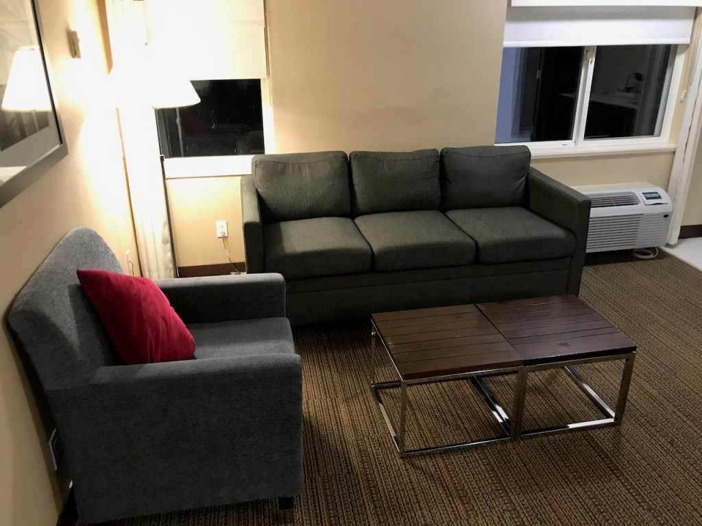 With no overhead light in the bedroom area, I did find the bedroom area to be a little bit dark. The bedroom relies on the two night lights on each side of the bed and the window for all of its room lighting. This isn’t a major issue since the living room is very bright. However, in the Pacific Northwest, when it’s dark some 16 hours a day in winter, it can make the space a little less functional.