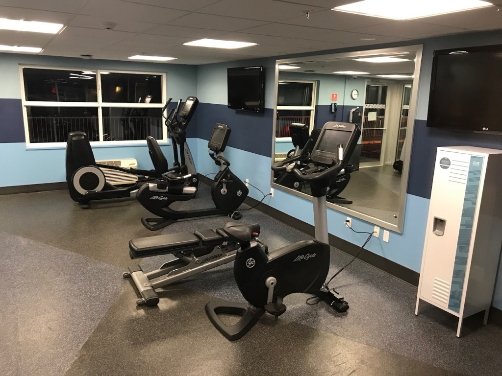 The hotel offers a pool that is seasonal. Based on signs on the door, it appears that it was closed in November for the winter season. It’s a pretty thin variety and should be considered as entertainment for the kids rather than a serious workout space.