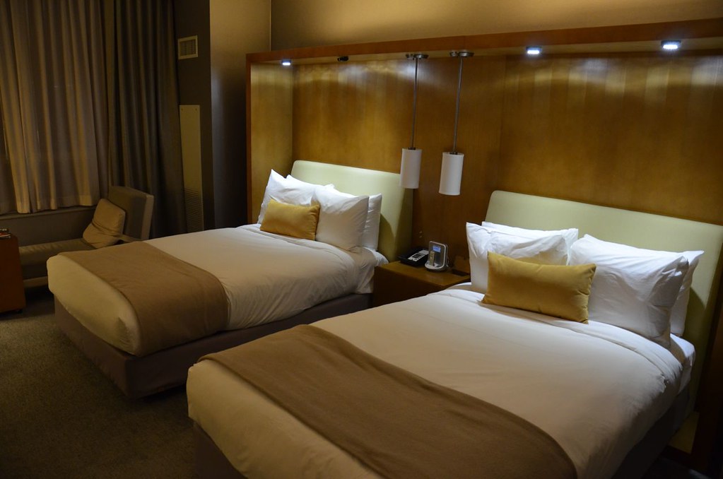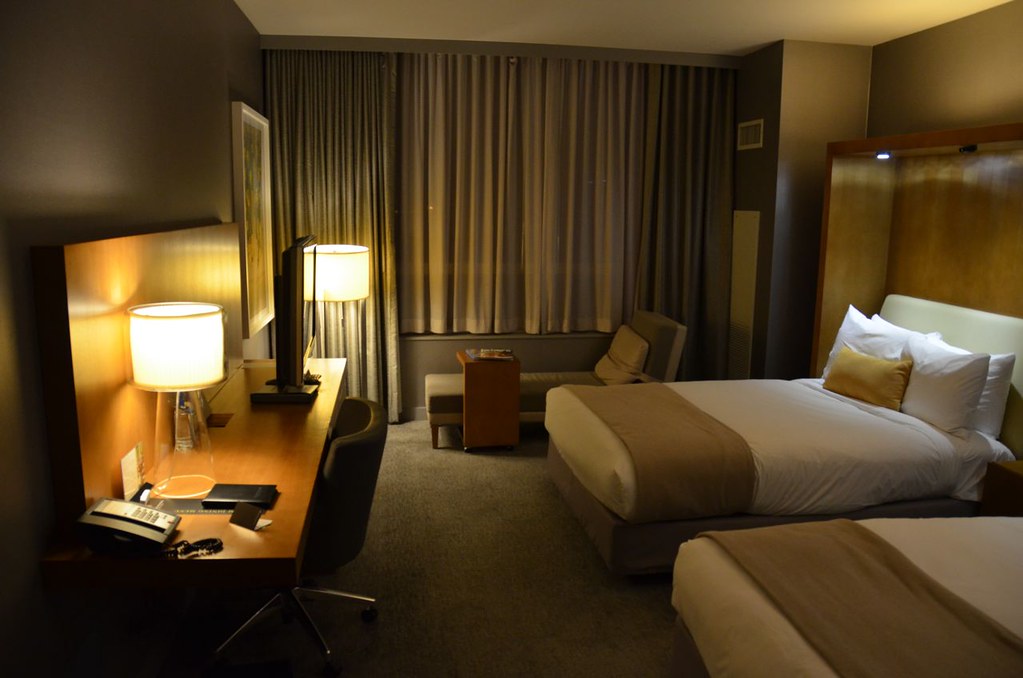 As a result of our flight cancellation, we were provided a place to rest for the night courtesy of United Airlines. We were comfortably put up in the InterContinental Chicago O’Hare airport; a four star hotel aiming to be the luxury choice when staying close to the airport. With vouchers in hand, we found our own way from the airport to the hotel.