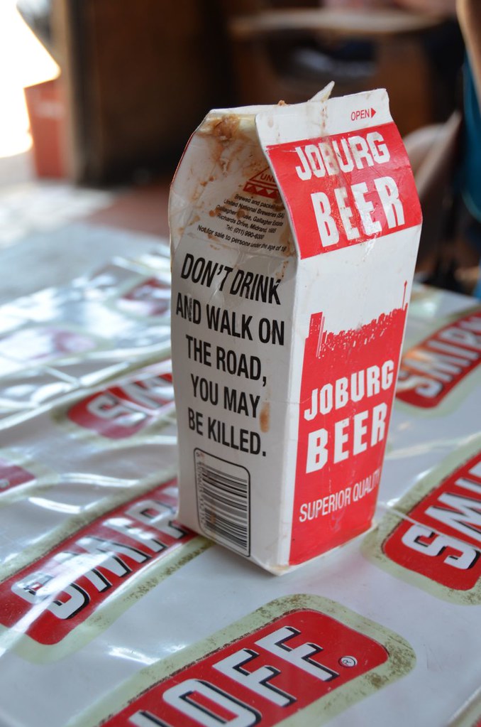 The public warning sign on the side of the beer carton says it all about the realities of South Africa…
