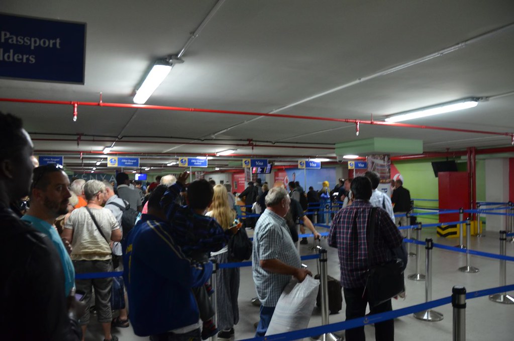 We joined the Other Nationals immigration line for twenty minutes. Despite several planes arriving, there were only 3 agents working for “other nationals”. Each entry involved a fingerprint scan of all 5 digits for both hands and a digital picture capture. Of course, many people without Visa’s ended up in the Other Nationals line instead of the Visa line and as a result, further delays ensued. I saw several immigration officials collecting $50 USD casg for visas, with receipts being issued but with Cash lying all over the counter. The immigration line took approximately 25 minutes to get through as we had an Emirates Boeing 777 just a head of us.