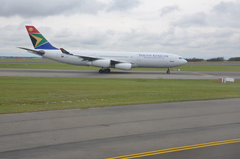 We had a bit of a wait today as we taxied to runway 3 L. Looking out the window, I happened to see the dreaded old SAA Airbus 340-200 was in operation today. I haven’t had the pleasure of experiencing it, but many seem to fear it. This is probably because it’s the oldest plane and doesn’t have monitors in the seat backs, leaving entertainment to overhead protector screens. SAA have 1 in their fleet and use them to swap out Airbus 340-300 / 600’s that have gone mechanical. It taxied beside us on the way to the hold line at runway 3L at Johannesburg.