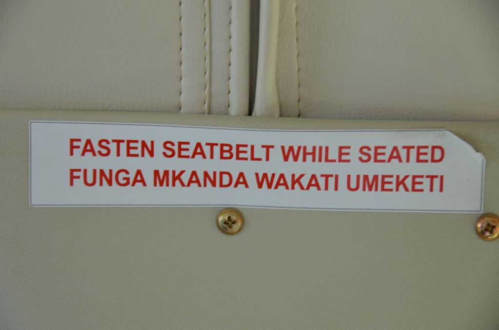 Once on board, we had a pre-flight safety briefing by the captain along with the in-flight service of the passing of the mints and Air Kenya branded bottle water. I ended up in a seat one row behind the cockpit, which was not fenced off.