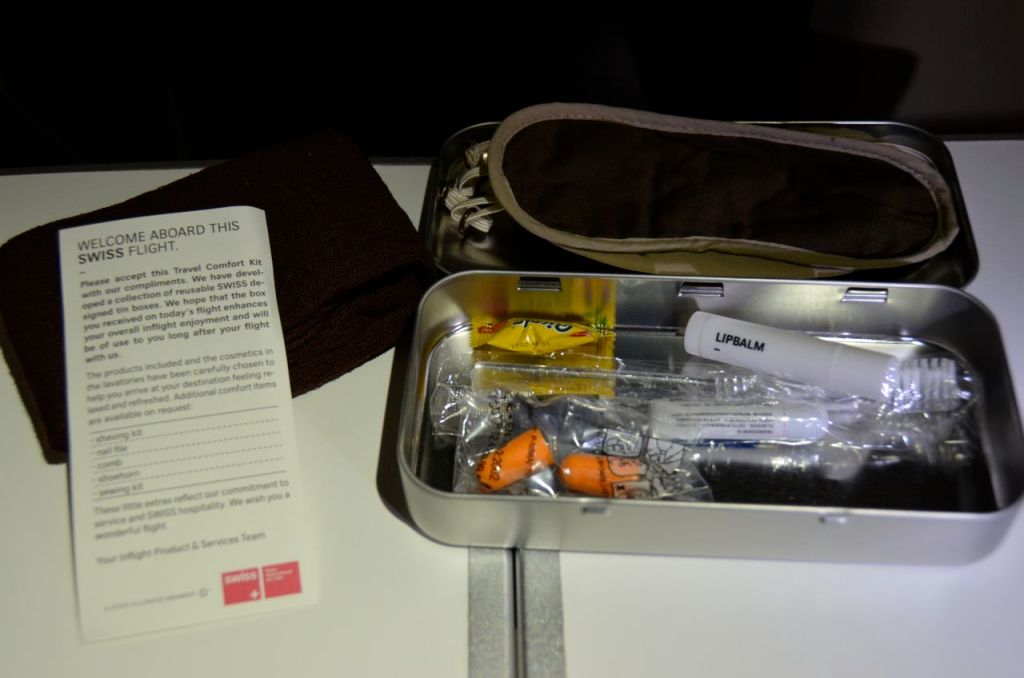 On our arrival, thhe amenity kit was on the shelf of the seat, along with some noise canceling headphones. The amenity kit wasn’t too exciting, with a box shaped like a geometry set that you had in secondary school.