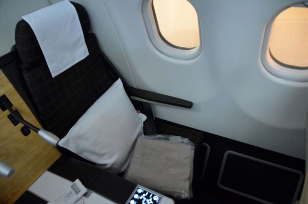While resting, I found the seat really tight. Although the seat was a true full flat seat, the seat itself was quite firm. As a usual side sleeper, I didn’t have much room for the knees, which kept bumping into plastic of some sort.