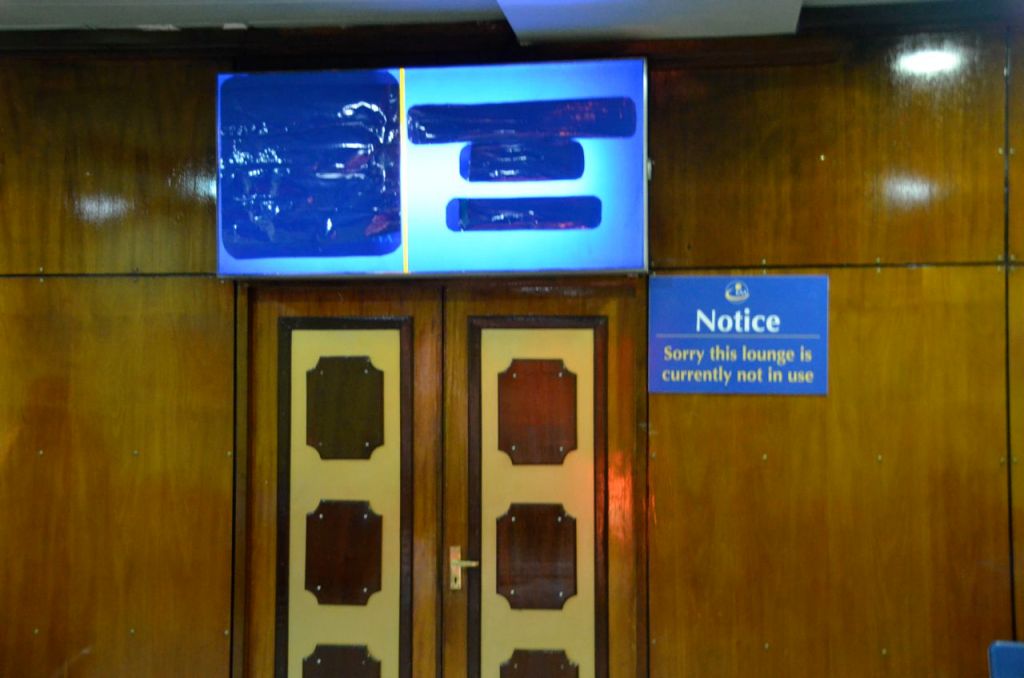 At T = 60 minutes, with no other options on the secure side, we opted to enter the secure screening pen at gate 14. I asked the document checker at the gate what happened to the lounge. I was told: “Well we used to have four. Two were closed due to politics, and two were closed due to the fire”. The Kenya Airways lounge appeared to be operating as normal but likely wasn’t big enough to handle all the flights leaving at this hour (Emirates, KLM, BA, Swiss and their own Kenya Airways passengers). We located free wifi in the holding lounge area which seemed to be provided via a smart Samsumg TV.