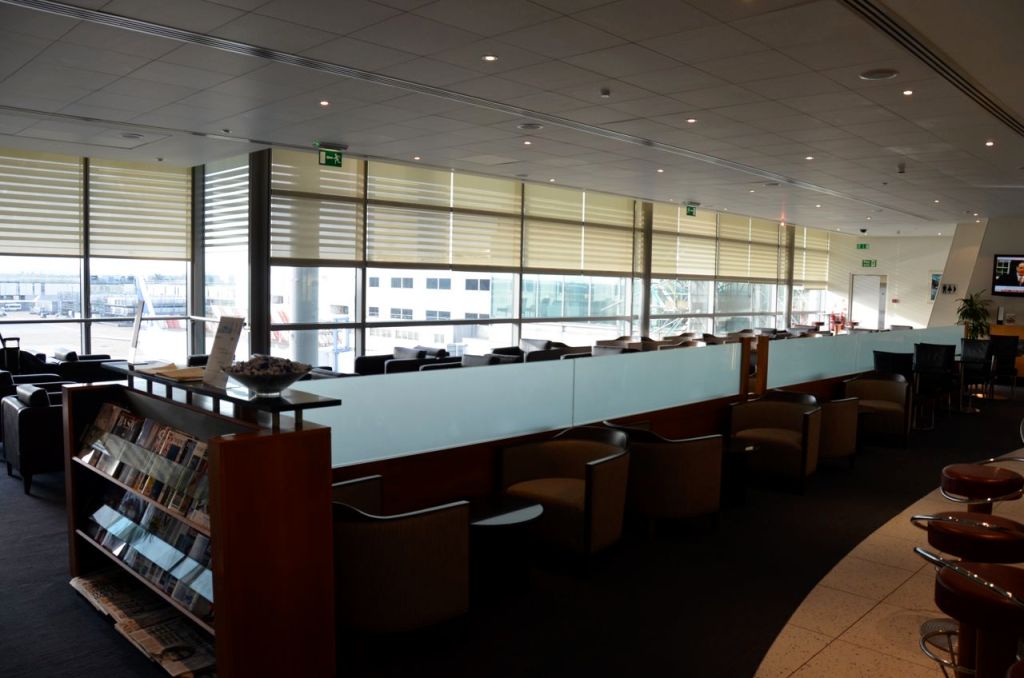 The upstairs business class portion of the lounge offered row seating against windows, along with a small dining area. It was enjoyably quiet on our visit and we had lots of choice with respect to seats.