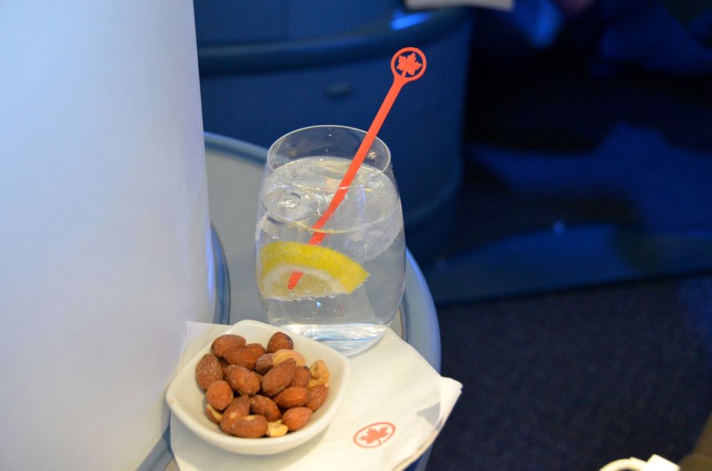 Once we were airborne, a pre-supper beverage service was offered. Warmed nuts and cocktail G+T offered served from the tray. A drink and nut re-fill was also offered.
