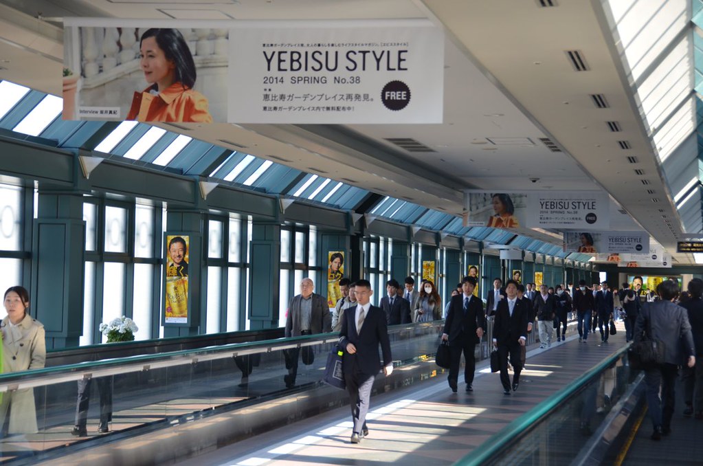 On arrival at Ebisu station, we walked the 10 minutes from the station on the travelator sky walk with our rollies to the hotel through the Yebisu Office complex. It was very easy to locate. Even though the train is supposed to be quicker, it took us about 2 hours door to door from the airport, cutting any time savings instead of taking the bus. (The bus takes two hours, and the train is supposed to take 90 minutes from Narita to Shibuya station)