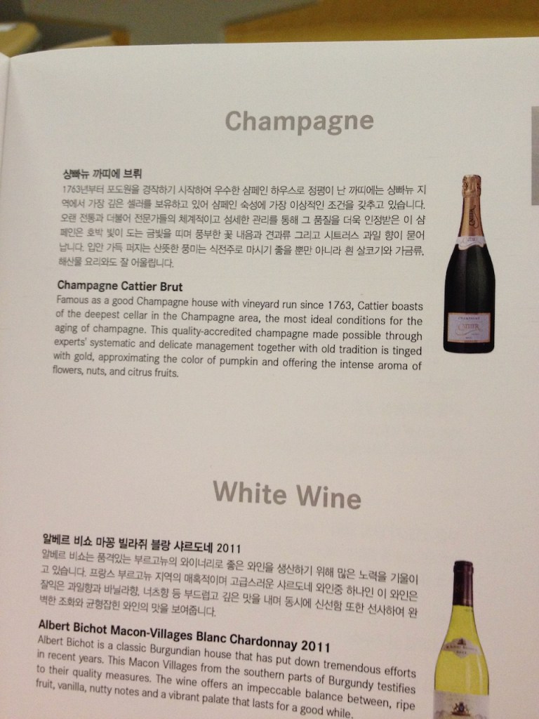 A short full service meal was provided on this flight. The menus were presented on the ground at Tokyo Narita. The wine lists on Asiana Business aren’t all too spectacular, with one white, one red and one champagne offered. It’s a little more limiting than other carriers, but for a less than two hour flight, I’m certainly not complaining.