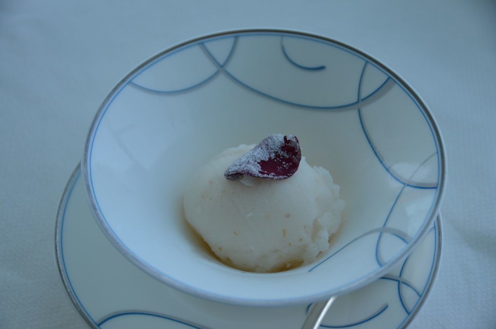 For the fifth course, we enjoyed a lychee and rose sorbet, along with a choice of teas.