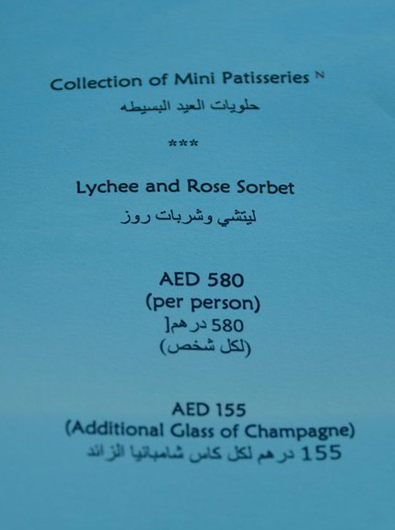 As mentioned earlier, the Afternoon Tea set menu was offered at 580 AED ($157 USD), including a glass of champagne. Since we’re on the topic of price, there was no mention of included gratituity but there was a spot for it at the end of the bill. I thought it was a bit over the top asking for gratuity on a set menu $400 bill without it being included. Most places I’ve experienced at this price point have it included. There was also a live classical piano playing music throughout the service.