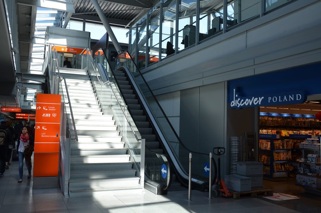 The lounge was located shortly after security screening in a central location of the Warsaw Chopin Airport. The lounge was situated up one eleven from the departures concourse, and was accessible either by elevator or escalator.
