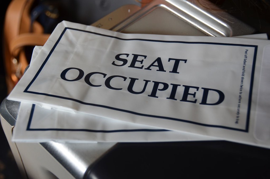 We had an older aircraft today with the vintage leather First Class Seats. Despite our late arrival, there was plenty of bin space was still available and we settled into 2A/2C.
