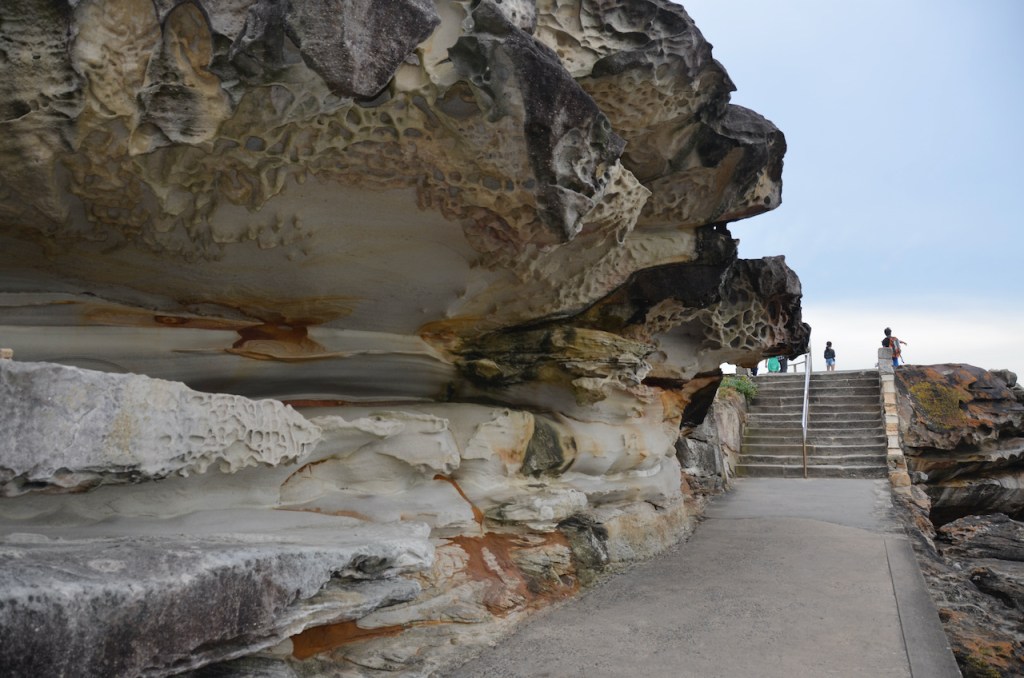 It started out as nice sunny beach day but it gradually clouded over. After we had the most of the sun, we set out on the trail walk to Coogee and Bronte Beach. This Bondi to Bronte Coastal Walk path is a beautiful cliff lined walk through the coves down towards the neighbouring Coogee Beach. The walk is located immediately next to Bondi Beach and is easily accessible from the southern side of the beach.
