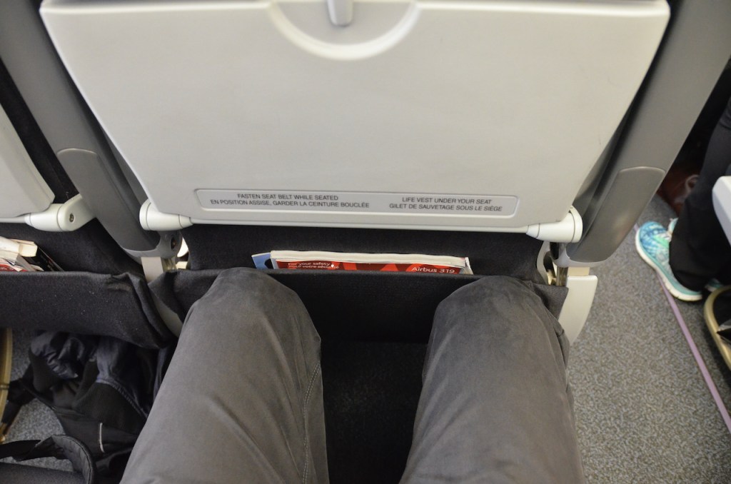 Unfortunately, that is where the comfort ended. I’m six feet two inch tall. Within 10 minutes of sitting in the seat, with the plane still parked at the gate, I subconsciously started to sit with my legs sideways on an angle. I didn’t realize it at first, but after recognizing that there was actually no physical space for my legs, I had to make adjustments. I don’t normally do leg room shots, but seated square, my knees were bumping the seat in front all the time.