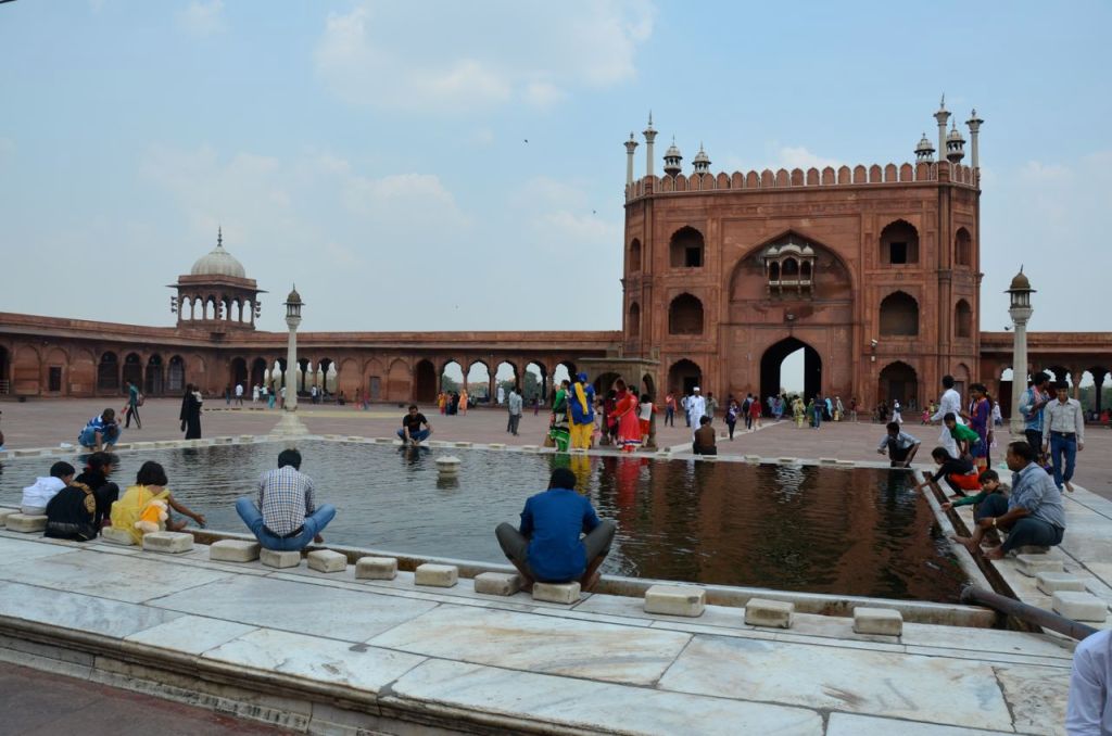 The centre of the courtyard at the Jama Masjid featured a pool; which was a popular attraction for many visitors. It was a popular gathering place with many worshippers stopping by.