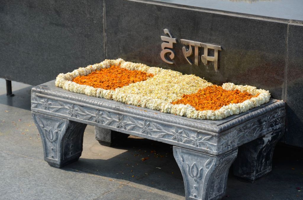 The inscription on the stone is supposed to read “Oh God” which were Ghandi’s last words before he was assassinated.