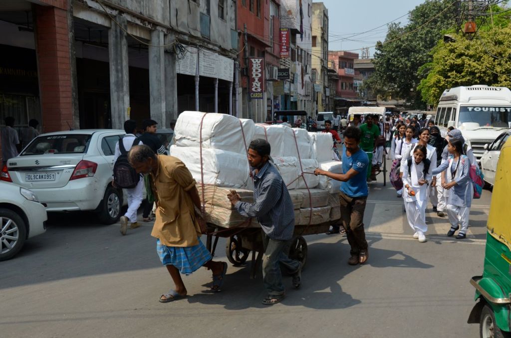 After Jama Masjid, we stepped out into our first taste of the streets of the real New Delhi. With no protection from fenced walls or other hotel security guards, we got our taste of the first real street life. It seems everything goes here and everything is hauled around on wagons or pedi-cabs. My corporate job working away at my computer at the office back home seemed pretty mundane compared to the back breaking work that these guys had to do to earn a dollar.