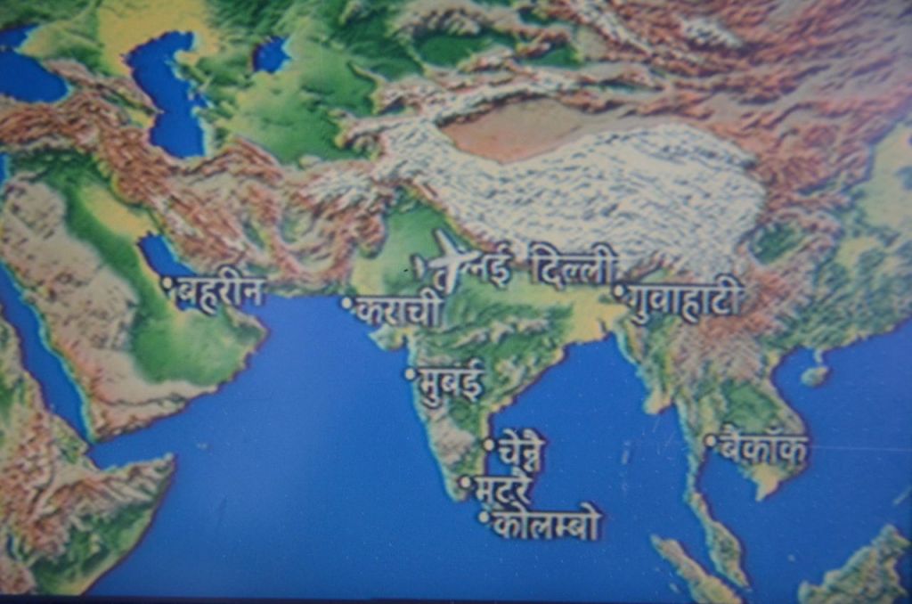 There was plenty of bin space for the rollies since most in this part of the world don’t seem to use rolling suitacases. The plane was the now familiar red and orange. Although it wasn’t as dirty as our Male to Delhi flights, it wasn’t exactly an example of Spic and Span either. A quick board and we were pushing back early at T-5.