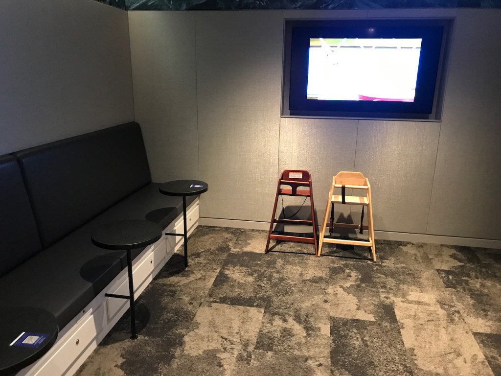 There was a separate family space room. The family space room offered a space for children that featured a television and few toys. There were separate loungers outside the family space room for tired parents.