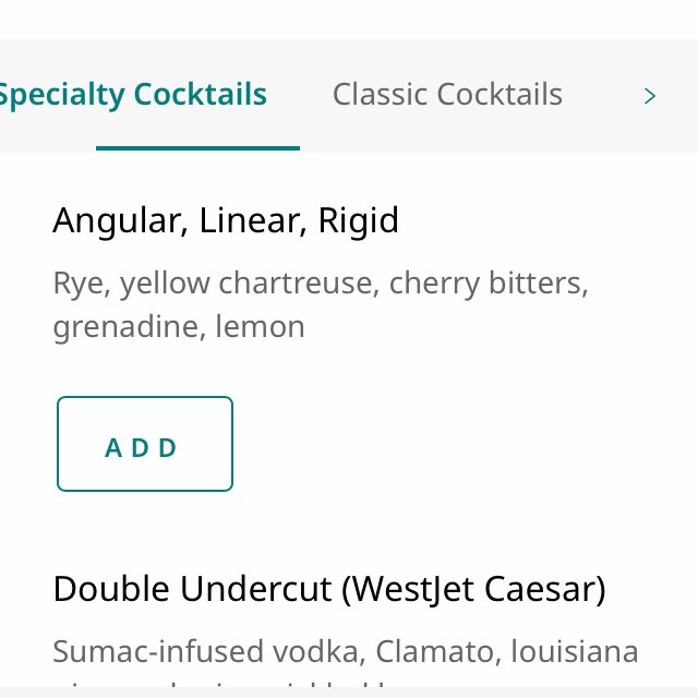 As if twelve wines weren’t enough, the lounge also offered mixed cocktails similar to the American Express Centurion Lounges. Unlike some lounges that might only offer a half dozen mixed cocktails, the Westjet Elevation Lounge had twelve cocktails on the menu.