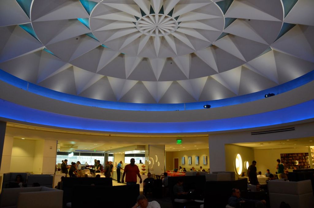 Once we were inside, we had an opportunity to appreciate the newly renovated Delta Sky Club. The most immediate striking feature was the ceiling accent, which really marked the lounge space. The high ceiling was further accented with rotating color light.