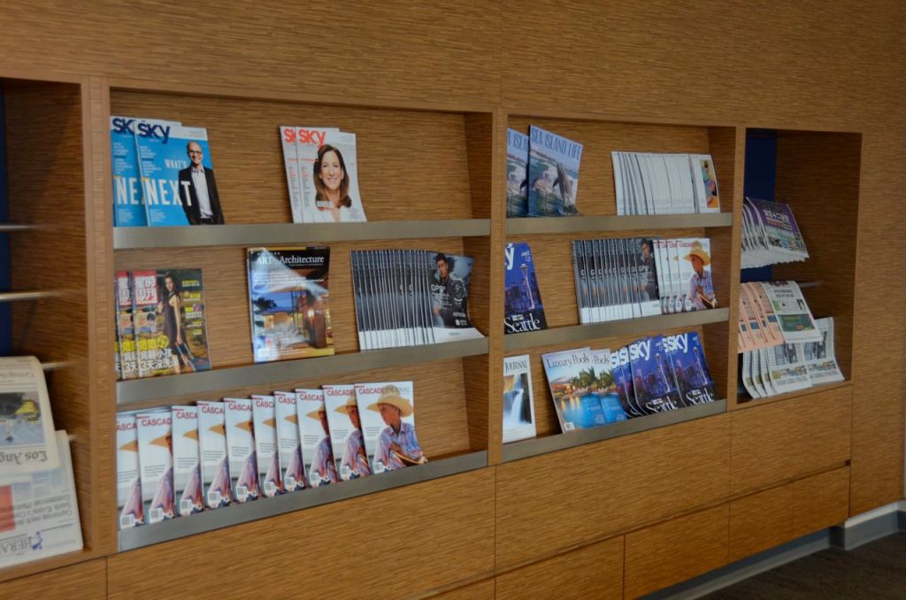 The lounge had striking colors of white, blue and red, which made strong statements in a contemporary manner. Off the main lounge area were several moods and seating areas that were a little less inspirational, but perfectly functional.