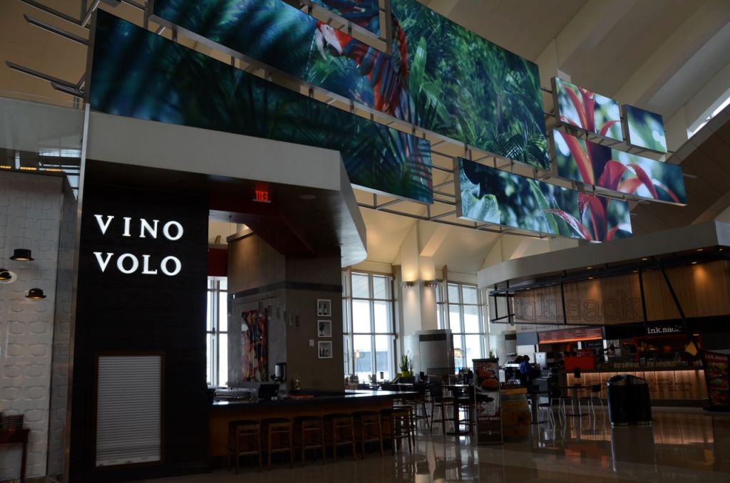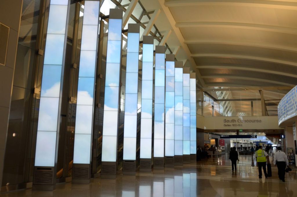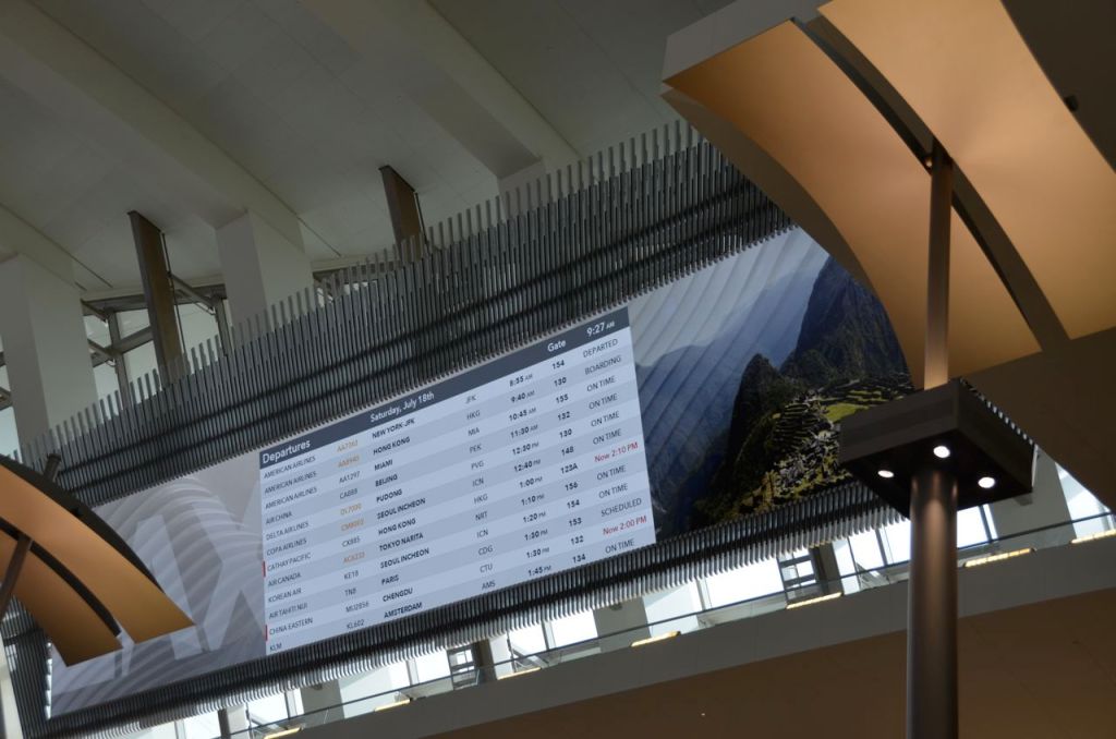 The airport has done a great job at using media displays in a creative way. They’ve added incorporated the flight information display boards into media displays, and put the media displays in areas that were otherwise unused.