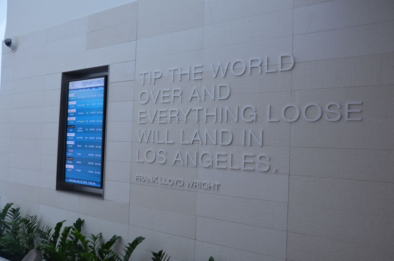 The lounge featured several quotes spread about the lounge instead of art work hung on the walls. The quotes were related to Los Angeles and California. Some of them were entertaining, although many were not famous or recognizable.